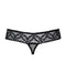 Schwarz-transparenter String ouvert 837-THC-1 von Obsessive aus zartem Tüll mit breitem Spitzenbund. Rundum weich und elastisch für vollen Komfort. Mit Schmuckelement und Satinschleifchen vorne verziert. Offener Schritt mit Faltendetails.