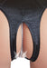Seidiger Slip ouvert mit stimulierender Perlenkette durch den Schritt. Aus Satin mit aufwendiger Stickerei in der Front.