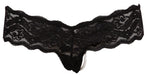 Zarter String aus floraler Spitze mit eingenähter Perlenkette im Schritt. Der extra breite Bund umschmeichelt Bauch und Taille.