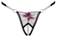Riostring ouvert von Cottelli LINGERIE aus feinem Tüllnetz mit bildschöner Blüte und zarter Stickerei auf der verführerisch offenen Front. 2 schwingende kleine Kettchen mit Perlen schmücken und stimulieren – sind aber auch komplett abnehmbar. Stretchbund vorne jeweils seitlich mit 2 Strassketten und -ring. Hinten elastischer Powernet-Einsatz für passformsicheren Sitz.