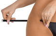 Knapper, elastischer String von Noir im schwarzen Powerwetlook. Vorne jeweils seitlich mit silberfarbenem Hakenverschluss zum Öffnen. Die raffinierte String-Lösung mit den beiden Stretchriemen über dem Po setzt die Kehrseite aufregend in Szene.