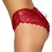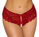 Aufwendig gearbeiteter Slip ouvert von Cottelli LINGERIE aus roter Blütenspitze. Weich und elastisch für hohen Tragekomfort. Mit Cut-out vorne und einladend offenem Schritt. Über dem Po mit variabler Satinband-Schnürung.