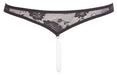 Zarter String aus floraler Spitze mit zweireihiger Perlenkette im offenen Schritt. Angenehm elastisch und passformsicher.