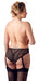 Straps-Slip ouvert aus Powernet mit floraler Spitze. Der taillenhohe Schnitt umschmeichelt Bauch und Taille. Strapse verstell- und abnehmbar. Ohne Strümpfe.