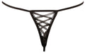 Knapp geschnittener String ouvert mit verführerisch offenem Schritt. Vorne mit zweifarbiger Stickerei und Strass-Details, hinten mit einer raffinierten Zierschnürung über dem Steißbein.