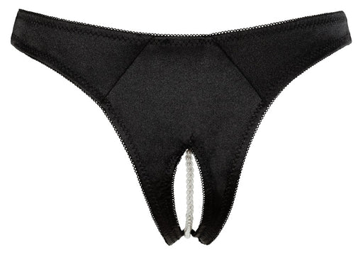 Verführt und stimuliert zugleich!Seidiger Slip ouvert mit stimulierender Perlenkette durch den Schritt. Aus Satin mit aufwendiger Stickerei in der ...