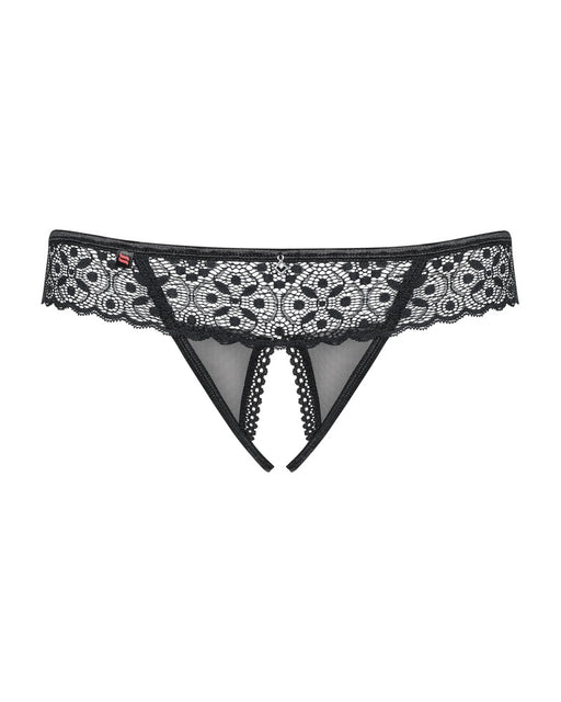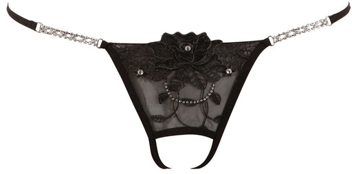 Effektvolle Spitze mit Komfort!Schwarzer Riostring Chemeris von Obsessive aus feiner elastischer Spitze. Komfortabler Schnitt mit kleinem Schmuckel...