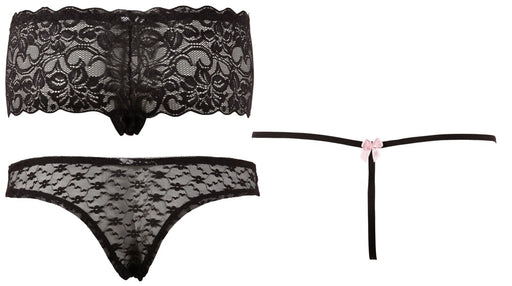 Cottelli LINGERIEAuf LagerEin Höschen für jede Gelegenheit!3-teiliges Set mit 1 Panties ouvert aus floraler Spitze, 1 schlichtem String mit elastischen Bändern und 1 knappem...