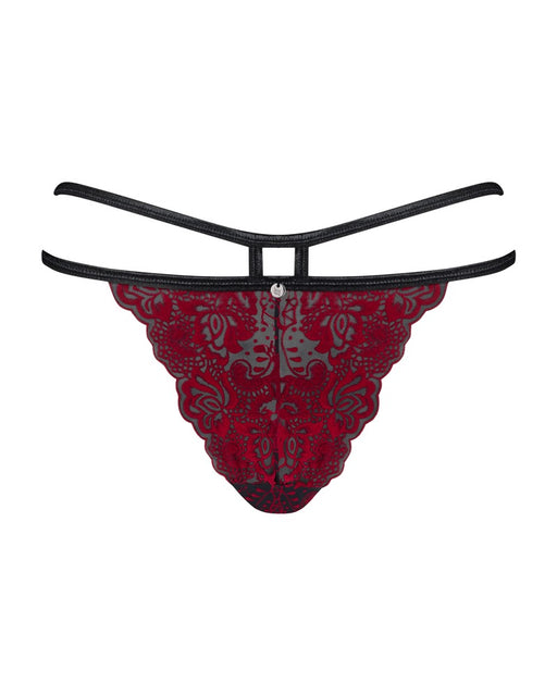 ObsessiveAuf LagerEleganz im Brasil-Style!Verführerisch geschnittener String Sugestina von Obsessive in schwarzer Transparenz mit dunkelroten filigranen Samt-Applika...