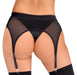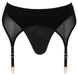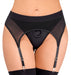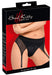 Schwarzer Strap-on-Riostring von Bad Kitty aus weicher Mikrofaser kombiniert mit Strapsgurt aus softem Powernet. String vorne doppellagig gearbeitet und mit Einschub, sowie sorgfältig eingearbeitetem Stretch-Haltering (Ø 3,5 cm) zum Einsetzen eines Dildo/Vibrators mit Stand-/Saugfuß. Die Strumpfhalter sind passend verstellbar.