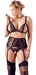 Soft-BH mit offenen Cups, verstellbaren Trägern und Hakenverschluss hinten. Strapsgurt mit Zierschnürungen und vier verstellbaren Strapsen. Dazu passender String.