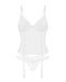 Transparentes Dessous-Set Alissium von Obsessive mit Strapshemd und String. Zarter Tüll mit Strukturspitze und in charmanter Farbe: Zeitloses Weiß. Rundum weich und elastisch für hohen Tragekomfort. Zwischen den soften Spitzen-Cups mit dezentem Schmuckdetail. Die Träger und der Hakenverschluss im Rücken sind passend verstellbar, genauso wie die Strumpfhalter. Der knapp geschnittene Spitzen-String komplettiert den sinnlichen Verführ-Look.