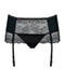 Breiter Strapsgurt Miamor von Obsessive im Materialmix aus Stretchstoff und edler Spitze. Die Strumpfhalter sind verstellbar. Schlichter schwarzer String inklusive. Lieferung ohne Strümpfe.