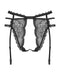 Schwarzer Straps-Slip Pearlove von Obsessive aus weicher elastischer Spitze. Im Schritt und über dem Po komplett offen. Im Rücken mit Hakenverschluss. Die verstellbaren Strumpfhalter sind fest am Slip angenäht. Vorne mit schönem Perlenschmuck-Detail.