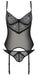 Strapshemd Zinnia Corset aus der Eco Collection von Passion inklusive dazu passendem Riostring. Beides aus elastischem Powernet mit fantasievoller Spitze in den Fronten. Strapshemd mit Bügel-Cups und Hakenverschluss im Rücken. Die Träger und Strumpfhalter sind in der Länge passend verstellbar. Der hübsche Riostring komplettiert dann diesen edlen Transparent-Look.