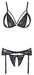 Dieses dreiteilige Strapsset verführt mit zarter Blütenspitze. Der BH mit verstellbaren Trägern besticht mit seinen Riemchendetails im Dekolleté und den aufregend geschlitzten Cups – akzentuiert mit einem dekorativen Zierring. Der dazugehörige Strapshalter ist schmal geschnitten und hat verstellbare Strumpfhalter. Beide Dessous-Teile werden mit einem praktischen Clipverschluss im Rücken geschlossen. Abgerundet wird das Ensemble von einem komplett offenen String.