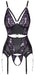 Strapshemd und String ouvert im Set von Cottelli LINGERIE. Im schwarzen Mattlook, vorne mit Spitzen-Einsätzen in edlem dunklem Lila. Rundum weich und elastisch für vollen Tragekomfort. Zwischen den soften Spitzen-Cups mit dekorativen Stretchriemchen und Ring. Auch im Cut-out der vorderen Taille und im Stringbund ein silberfarbener Ring. Die Träger und insgesamt 6 Strumpfhalter sind passend verstellbar. Genauso wie der 2fache-Hakenverschluss im Rücken. Der kleine String ist im Schritt verführerisch offen.