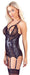 Verführerisches Strapshemd aus mattem Stoff mit 3 verstellbaren Haltern pro Seite und geschlitzten Cups. Liebevoll verarbeitet und in der Front mit aufwendigen Spitzeneinsätzen und Zierschnürung. Der eingenähte Taillengurt betont die weiblichen Kurven. Der passende String ouvert ist auch gleich dabei. Ohne Strümpfe.
