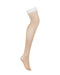 Klassische nudefarbene Strümpfe S814 von Obsessive mit Abschluss in romantischem Weiß. Zeitlos und elegant schmiegen sie sich ans Bein. Der softe Abschluss ist komfortabel elastisch.