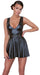 Oben eng geschnittenes, kurzes Kleid von Cottelli PARTY im schwarzen Mattlook mit ausgestelltem schwingendem Rock-Teil. Vorne extra tief in V-Form ausgeschnitten. In der Taille zwei mit Ringen verstellbarer Gürtel. Weich und hochelastisch für hohen Tragekomfort.