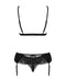 Soft-BH, Strapsgurt und String im 3-teiligen Verführ-Set Maderris von Obsessive. Zarter schwarzer Material-Mix mit Blüten- und Wimpernspitze. Rundum weich und elastisch für hohen Tragekomfort. Die Träger und Strumpfhalter sind passend verstellbar.