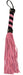 Pinkschwarzes Fetisch-Set, das aus Straußenfeder, Augenmaske, Klettverschlusshandfesseln mit kurzer Verbindungskette, kleiner Velourslederpeitsche und Paddel besteht.