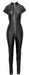 Stylischer Overall von Zado aus weichem Lammnappa mit seitlichen Stretcheinsätzen für perfekten hautnahen Sitz und höchsten Tragekomfort. Der praktisch-erotische 3-Wege-Reißverschluss verläuft vorne vom Stehkragen tief runter in den Schritt.