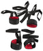 4 Handgelenk- bzw. Fußgelenk-Manschetten an 115 cm langen Schlaufen-Bändern. Alle Manschetten soft gepolstert und durch Klettverschlüsse individuell für Sie und Ihn verstellbar. Aus reißfester Kunstfaser. 100% Polyamid. 4-teiliges-Set.