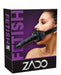 Knebel von ZADO mit verstellbarem schwarzem Kopfgurt aus Leder und abnehmbarem Außen-Dildo (Druckknöpfe). Dildo und Knebel aus Latex und in Penisoptik mit ausgeformter Eichel.