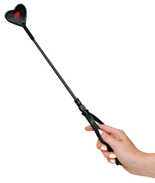 Für schlagkräftige Lustmomente!Schwarz-rote Gerte von Bad Kitty mit Herzspitze, Kunststoffstab und Griff mit Aufhängung. Ca. 45 cm lang. Polyuretha...