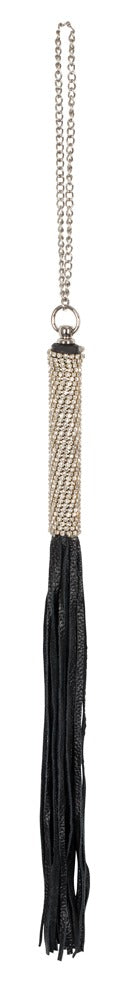 Für Liebe mit ein bisschen Hiebe!Schwarze Minipeitsche mit schmalen Striemen und strassbesetztem Griff. Gesamtlänge ca. 40 cm. Polyurethan, Metall....