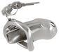 Der Peniskäfig lässt sich leicht an- und ablegen: Der nicht erigierte Penis kommt in den Käfig, der stählerne Ring wird um die Hoden gelegt. Selbstverständlich ist der Käfig mit dem integrierten Schloss (inkl. 2 Schlüsseln) abschließbar.