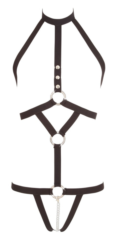 Bad KittyAuf LagerErotischer Bondage-Einteiler!Dieser Riemenbody aus weichen Webriemen begeistert mit funkelnden Strassringen in der Front sowie dekorativen Druckknö...