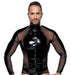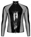 Extravagantes schwarzes Langarm-Shirt von Black Level aus glänzendem Lack mit aufregend transparenten Netz-Einsätzen. Mit stylischem Stehkragen und durchgehendem 2-Wege-Reißverschluss vorne. Der elastische Material-Mix schmiegt sich hautnah an und trägt sich sehr komfortabel.