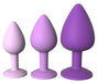 Perfektes Set für Einsteiger in die anale Lust und ein aufregendes Dehn-Training. Drei Analplugs mit Soft Touch-Oberfläche - jeder mit klarem Glitzerstein am Stopper. Jeder im einfühlsamen Anal-Design mit schmaler Spitze.