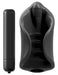 Schwarze flexible Masturbator-Manschette mit Vibration und ausgeprägter Reizstruktur. (Bitte Batterie extra bestellen: 1 x AAA)