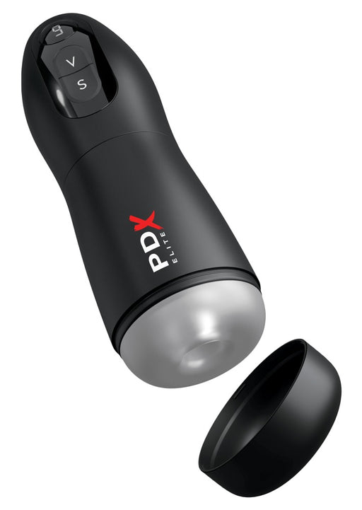 PDX EliteAuf LagerMit Saugfuß für das freihändige Erlebnis!Schwarzer Masturbator mit 10 Melkstufen und 5 Geschwindigkeiten. Soundfunktion mit mehreren Lauten und Spr...