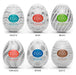 6 kompakte Einmal-Masturbatoren (Eggs) im Variety Pack New Standard von TENGA mit verschiedenen Reizstrukturen im Inneren: Wave II, Boxy, Brush, Tornado, Sphere und Silky II. Die ultra flexiblen Masturbator-Sleeves befinden sich jeweils in der eiförmigen Hülle und werden zusammen beim Handjob mit dem jeweils beiliegenden Gleitgel verwendet.