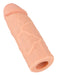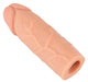 Gefühlsechte Extension Sleeve +4cm von Nature Skin mit praller Eichel und markanter Äderung. Unterstützt mit seinem strammen Sitz das männliche Stehvermögen, verbreitert den Penis um rund 2 cm und macht ihn 4 cm länger.