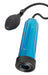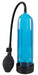 Penispumpe mit blau-transparentem Zylinder und Messskala, an der die Erfolge des Pumpens mit der handlichen Ballpumpe abgelesen werden können. Zylinder 24 cm lang, Ø innen 6,4 cm, Ø außen 6,3-7 cm. Mit dehnbarer Silikon-Manschette (Ø 3,1 cm). Material: ABS/Silikon.