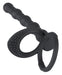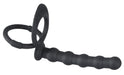 Penis-/Hodenring mit Analdildo. Einfach die beiden entsprechenden Ringe über Penis und Hoden streifen - und schon bist Du mit einem zweiten gleitfreudigen, biegsamen Glied ausgestattet, um Deine Partnerin gleich doppelt zu beglücken! Penisring mit Klitoris-Reiznoppen. Alles mit gleitfreudiger Soft-Touch-Oberfläche. Gesamtlänge 19 cm, Analdildo 12,5 cm lang, Ø max. 2,3 cm. Penisring-Ø 3,8 cm (dehnbar), Hodenring-Ø 5 cm (dehnbar). Silikon, PU-Beschichtung.