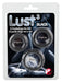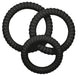 3 Penisringe mit Rillenstruktur mit unterschiedlichen Durchmessern (2,6, 3,0 und 3,5 cm). Auch ideal zur Hoden-Schnürung. Einzeln oder in Kombination zu verwenden. Material: Silikon.