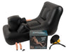 Aufblasbare schwarze Liege mit separat aufblasbarem Element (50 cm hoch, 30 cm breit, 30 cm tief), das über eine 3-stufige fernsteuerbare Stoßfunktion verfügt. Lieferumfang beinhaltet drei Vibratoren, die auch separat genutzt werden können und vibrieren, sobald sie in den Adapter eingeschraubt werden.