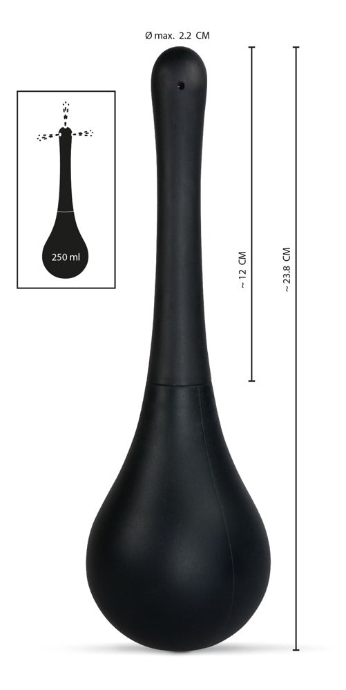 RebelAuf LagerFür SIE und IHN!Schwarze 200-ml-Intimdusche mit drei Öffnungen und abnehmbarem, schmalem Spritzaufsatz. Einfach den Pumpball mit Wasser o.ä. befüll...