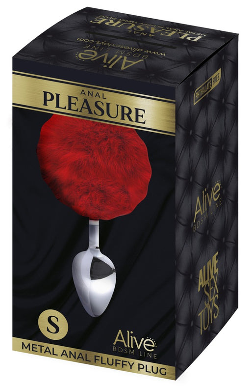 AliveAuf LagerStimulation & Schmuck für den Anus beim Bunny-Play!Konisch geformter, gutsitzender Metal Anal Fluffy Plug S von Alive mit rotem fluffigem Pusch...