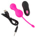 Wiederaufladbares Vibrokugel-Duo RC Love Balls von Sweet Smile mit elastischem Rückholband und 10 Vibrationsmodi. Steuerbar per Knopfdruck oder über eine Fernbedienung. Wasserdicht für heißen Spaß in Bad und Dusche. Inklusive USB-Kabel.