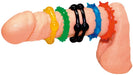 Diese fünf bunten Penisringe aus TPE halten das Glied durch strammen Sitz lange in Hochform (Blutstau-Effekt) – für puren Dauer-Sex! Die unterschiedlichen Stimulations-Noppen und -Zacken sorgen währenddessen für ekstatische Lustmomente bei jedem Stoß. Alle Penisringe sind im Durchmesser sehr dehnbar und daher sehr anpassbar.