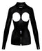 Aufregend busenfreier Body. Die beiden Reißverschlüsse im Rücken und im Schritt laden zudem zu prickelnden Fummeleien ein… Mit langem Arm. Auf flacher Form getaucht.