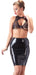 Der taillenhohe Latex-Rock ist knielang und schmal geschnitten.