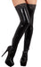 Oberschenkellange Latex-Strümpfe mit Latex-Abschluss in Spitzenoptik.